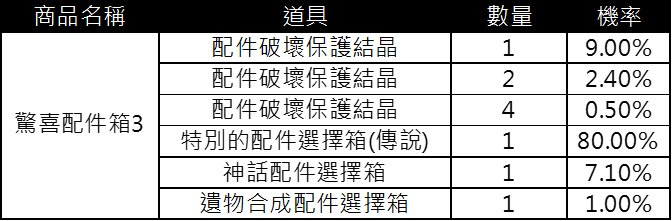 機率表 (驚喜時裝/配件/徽章 隨機箱)2025/10/09 更新[驚喜配件箱3]